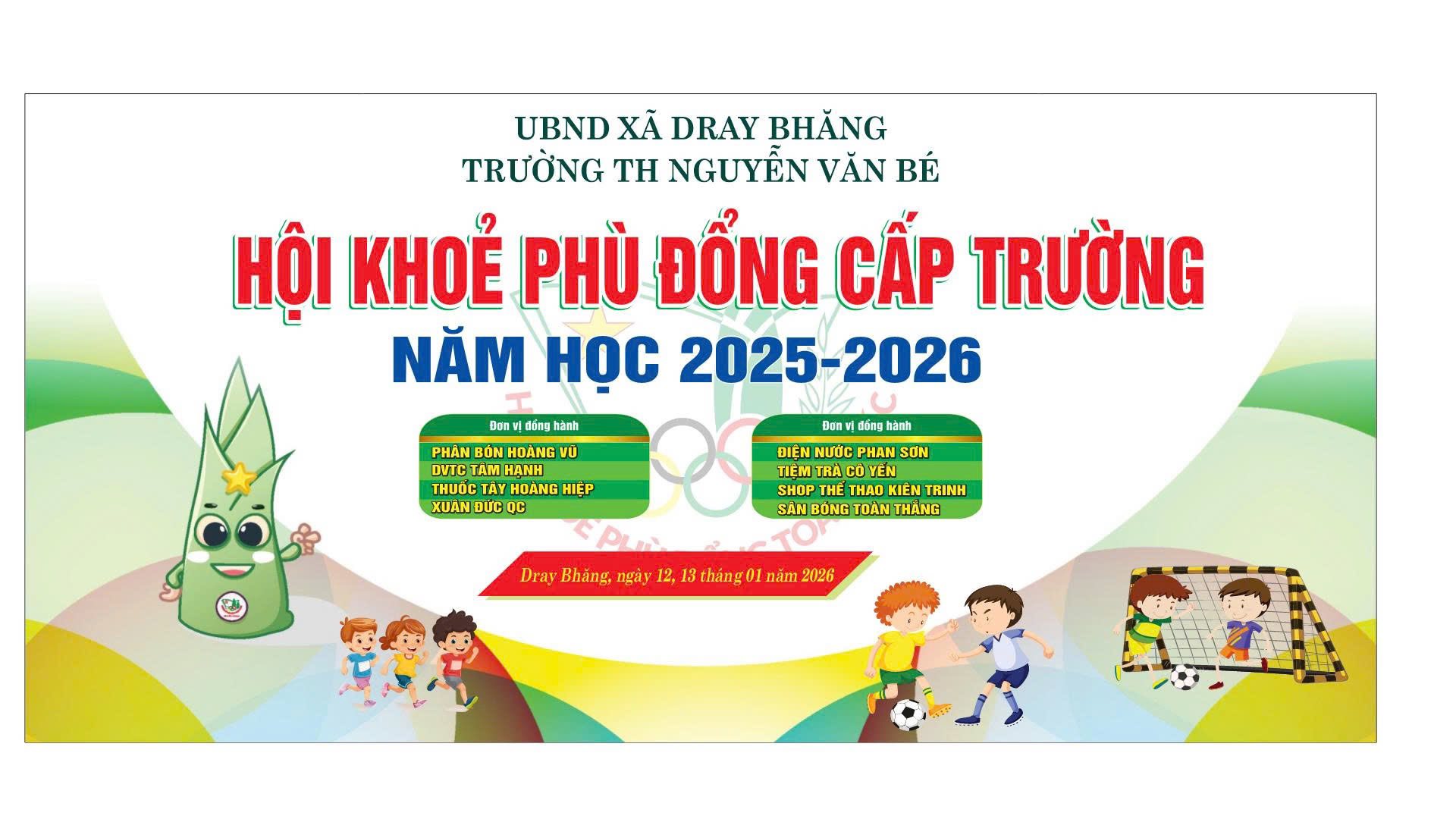Trong hai ngày 12 và 13/01/2026, Trường Tiểu học Nguyễn Văn Bé đã tổ chức Hội khỏe Phù Đổng cấp trường năm học 2025–2026 trong không khí thi đua sôi nổi, hào hứng và đầy ý nghĩa.